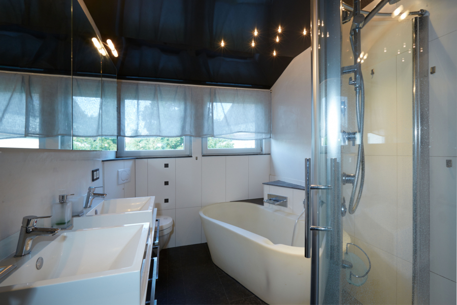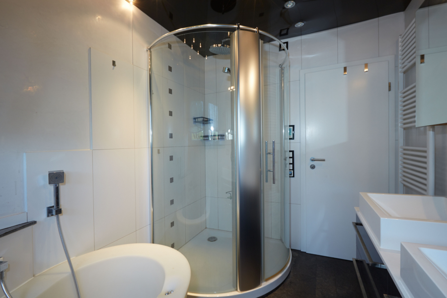 Das Dachgeschoss beherbergt drei weitere Schlafzimmer, von denen zwei Zugang zu einem kleinen Nordwest-Balkon mit herrlicher Aussicht auf die Weinberge haben. Ergänzt wird diese Etage durch ein modernes Tageslichtbad, ausgestattet mit Doppelwaschbecken, Badewanne, Dusche, WC und einem stimmungsvollen Sternenhimmel.