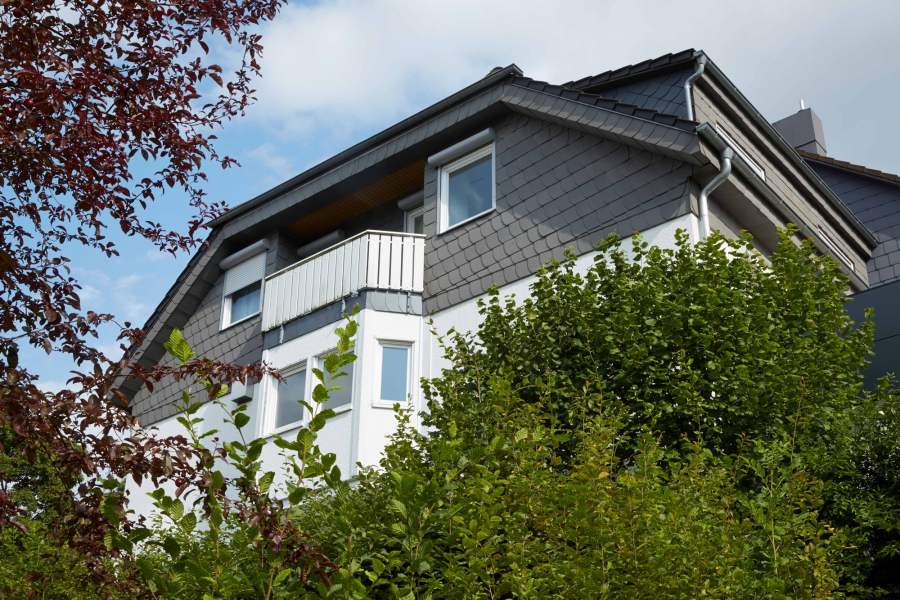 Das Dach wurde circa 2015 mit Tonziegeln neu gedeckt, das Dachgebälk und die Dämmung stammen jedoch aus dem ursprünglichen Baujahr. Ebenfalls 2015 erhielt die Fassade einen neuen Anstrich; ab dem Dachgeschoss und den Gauben ist sie zusätzlich mit Schieferplatten verkleidet. Die isolierverglasten Holzfenster stammen aus dem Baujahr.
