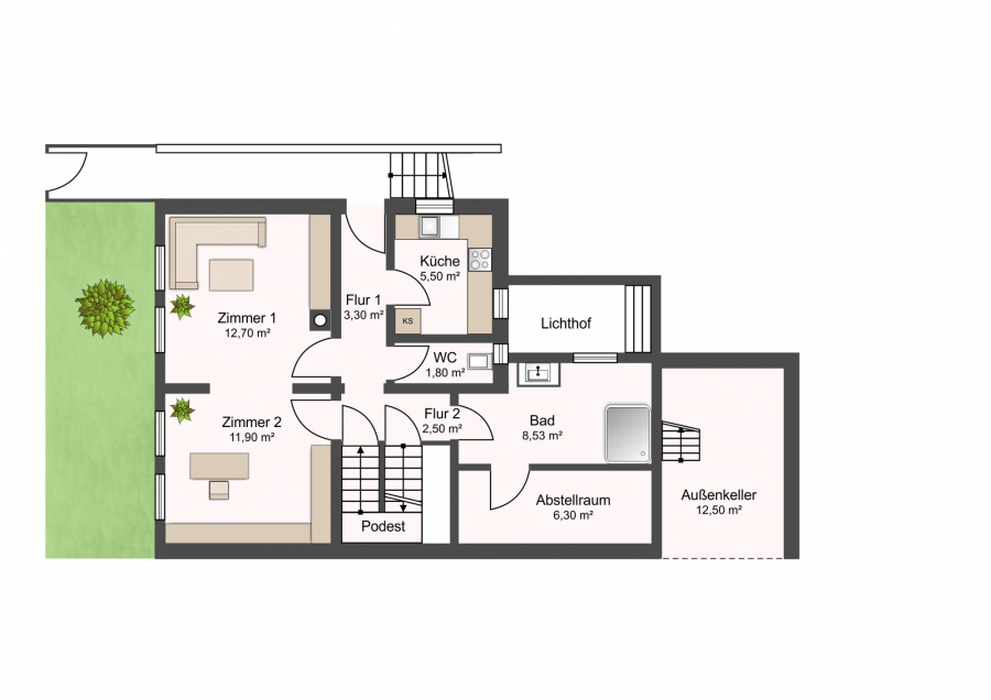 EG: ca. 46 m² Wohnfläche + ca. 6 m² Nutzfläche