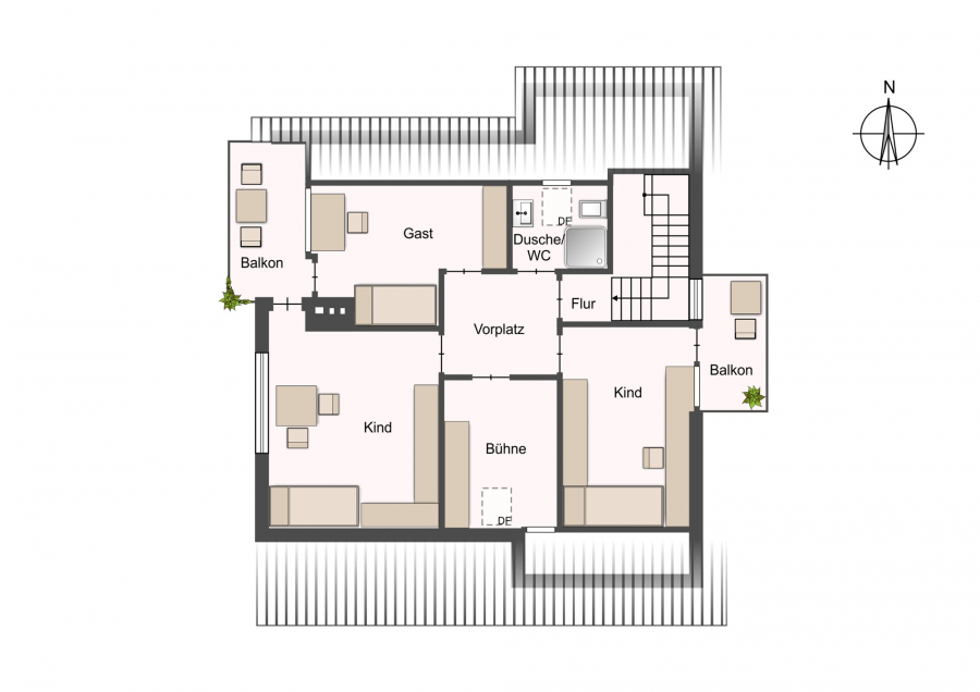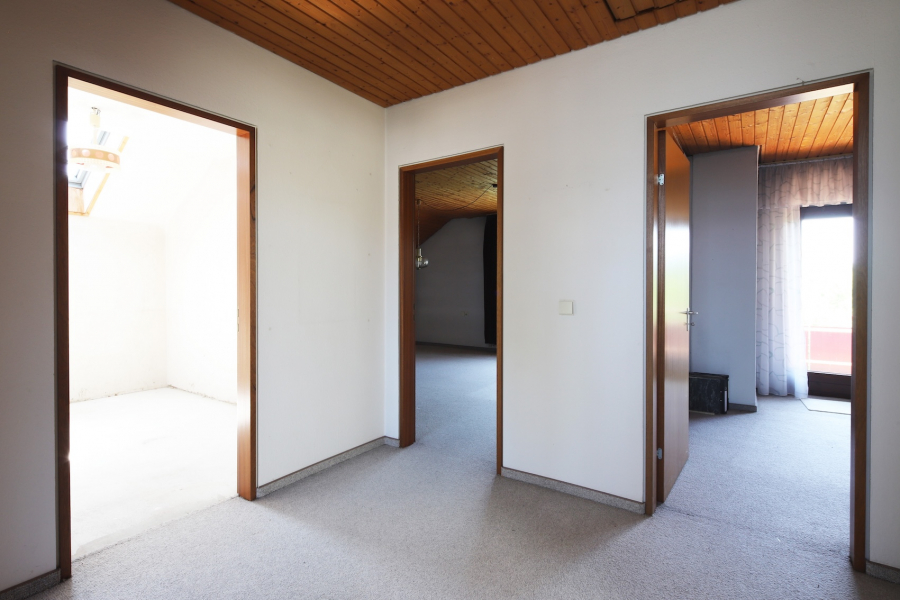 Im Dachgeschoss erwarten Sie drei gut geschnittene Zimmer und ein wohnraumartig ausgebauter Bühnenraum, die sich flexibel als Kinder-, Arbeits- oder Gästezimmer nutzen lassen.