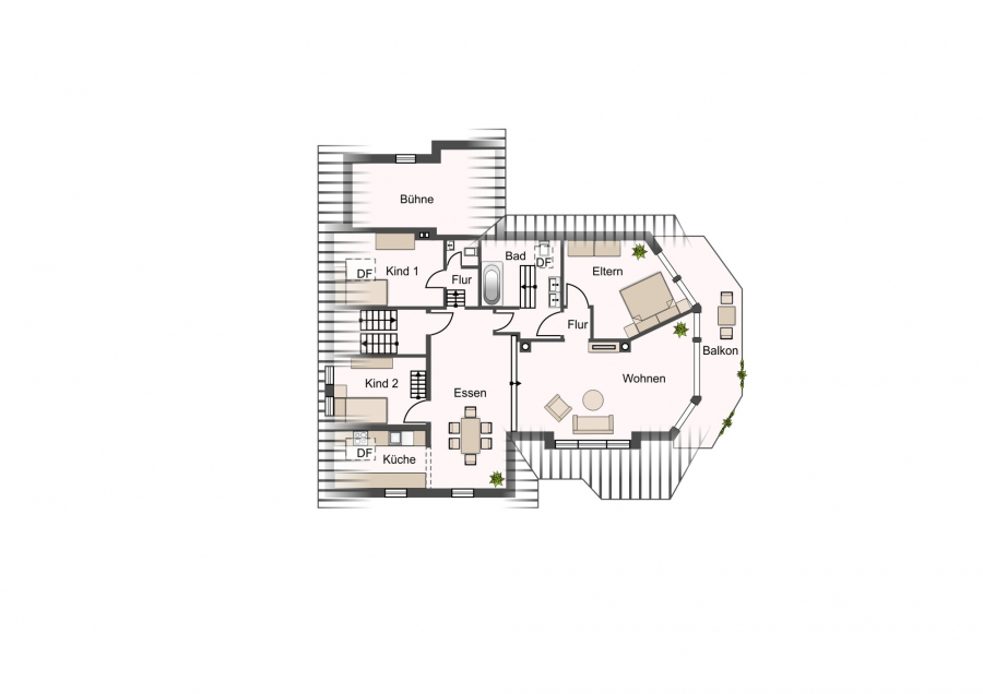 - je nach Nutzung der Räume unterschiedliche Bodenbeläge
