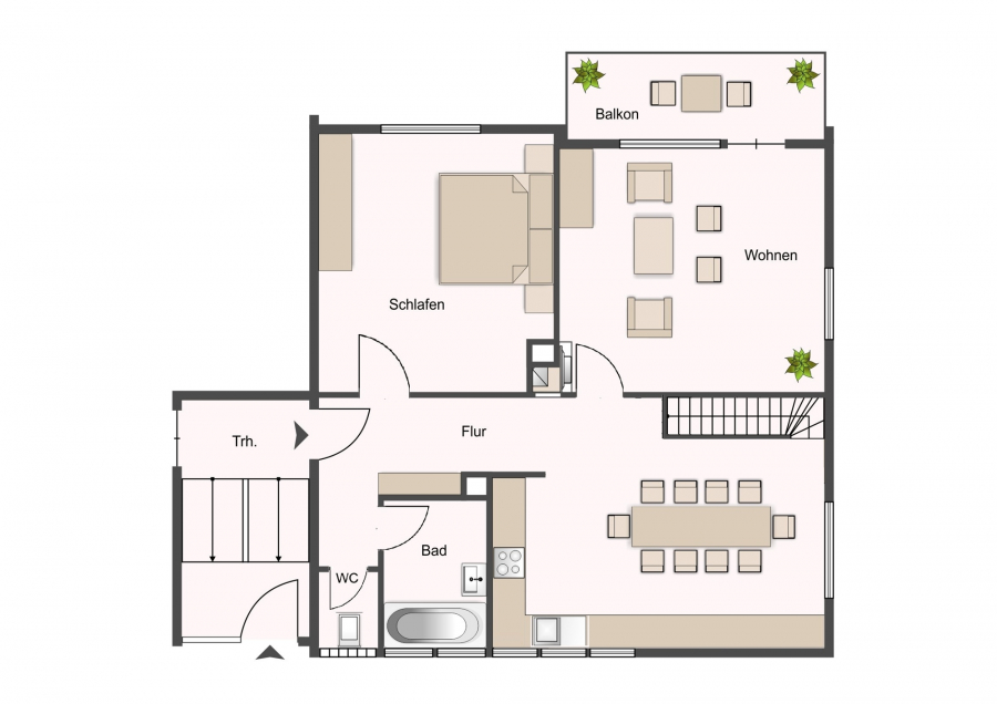 Diese Wohnung ist über eine Innentreppe baulich mit der Wohnung Nr. 2 verbunden.