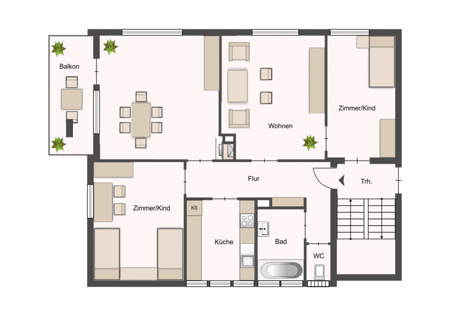 Wohnung Nr. 1 im Erdgeschoß rechts im Haus 92 = Wohnfläche ca. 79 m²: