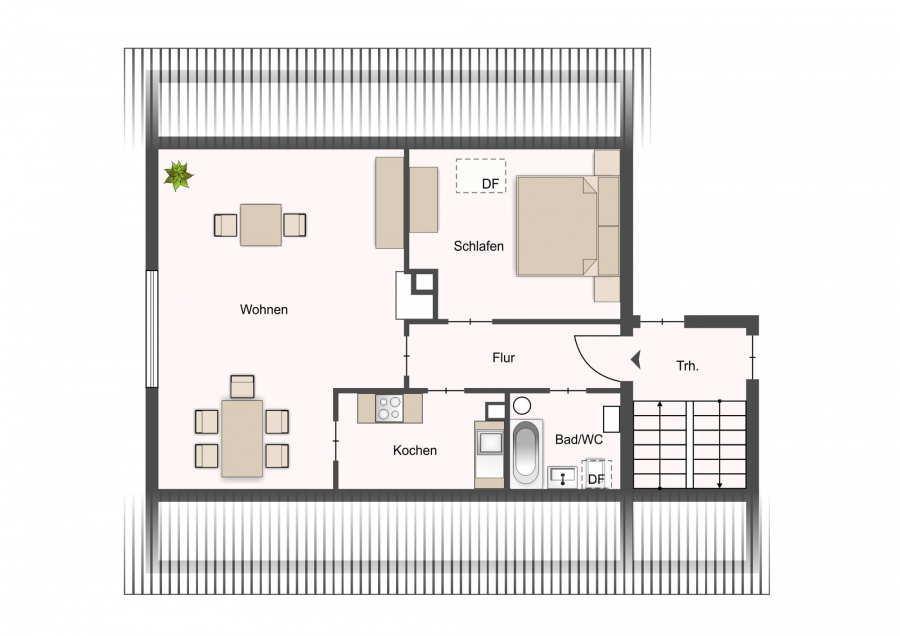 Wohnung Nr. 7 im Dachgeschoß im Haus 6 = Wohnfläche ca. 39 m²:
