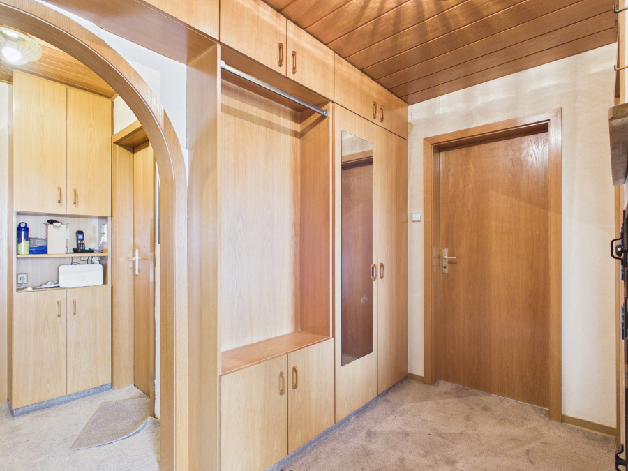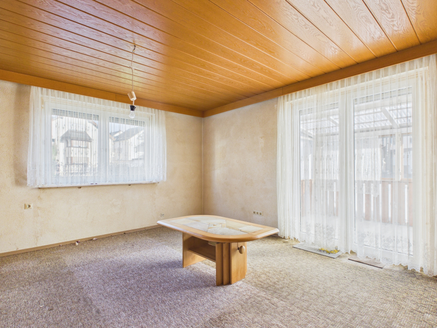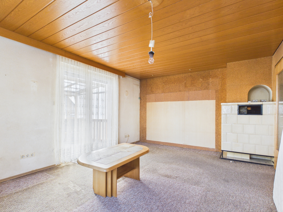 Die Wohnungen im Erd- und Obergeschoss befinden sich in einem überwiegend dem Baujahr entsprechenden Zustand und bieten eine solide Basis für individuelle Modernisierungsmaßnahmen. Charakteristisch sind die vorhandenen Holzdecken sowie klassische Rauhfasertapeten, die den ursprünglichen Charme des Hauses widerspiegeln.