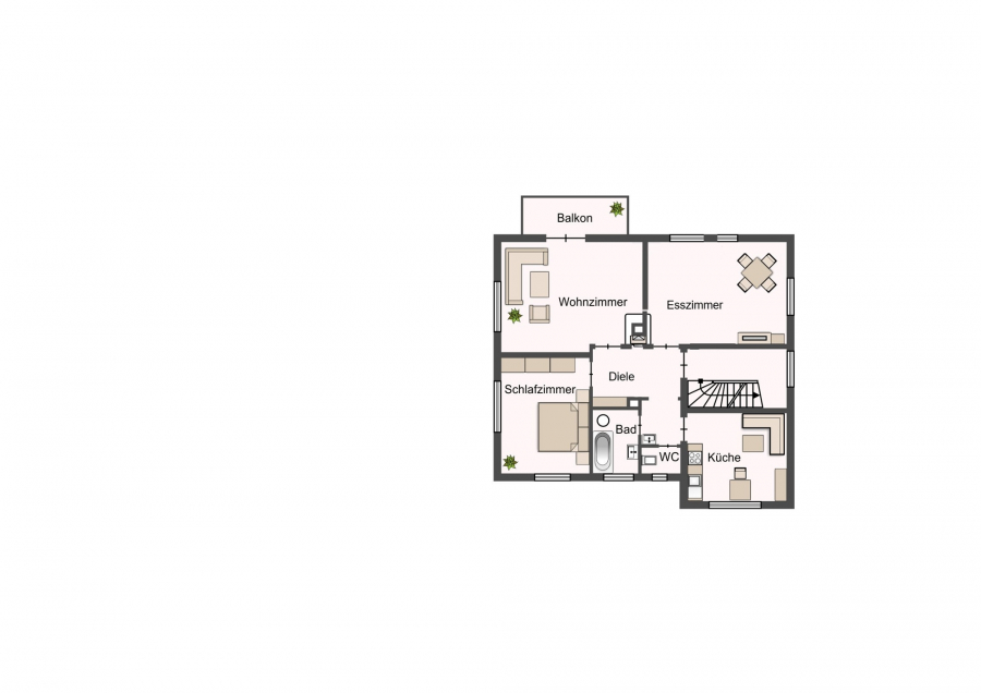 Die Wohnung im Obergeschoss verfügt über einen nahezu identischen Grundriss und wird durch einen Balkon ergänzt, der zusätzlichen Freiraum bietet.