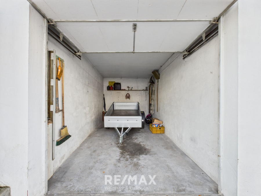 Einzelgarage mit ca. 2,51x5,48m Grundfläche und weiterer Parkmöglichkeit vor der Garage.