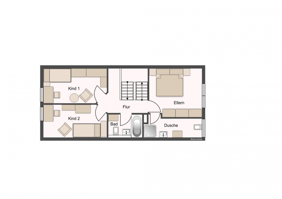 Dachgeschoss: 2 Kinderzimmer, Badezimmer sowie das Elternschlafzimmer mit eigenem Badezimmer