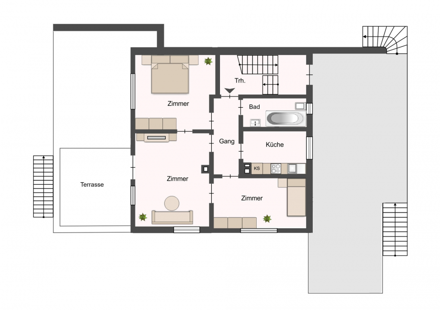 - Wände/Decken: EG, DG tapeziert, weiß gestrichen