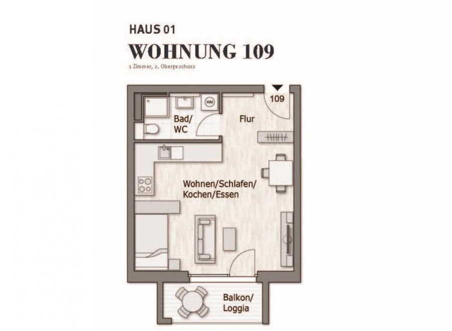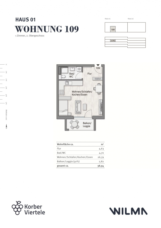 Zu dieser Wohnung kann auch die daneben liegende Wohnung WHG 108 mit ca. 80 m² Wohnfläche erworben werden.