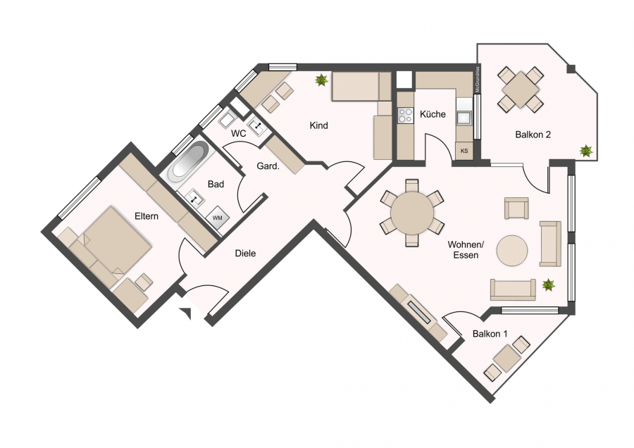 Wohnfläche: Ca. 79 m², mit Süd-Ost- und Süd-Westbalkon
