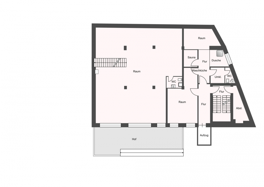 Aktuell finden Sie im Erdgeschoss eine große, flexibel nutzbare Fläche vor. Alle Räume sind in Trockenbauweise gestaltet, was eine individuelle Neugestaltung und Raumaufteilung ermöglicht. Derzeit umfasst das Erdgeschoss folgende Räumlichkeiten: