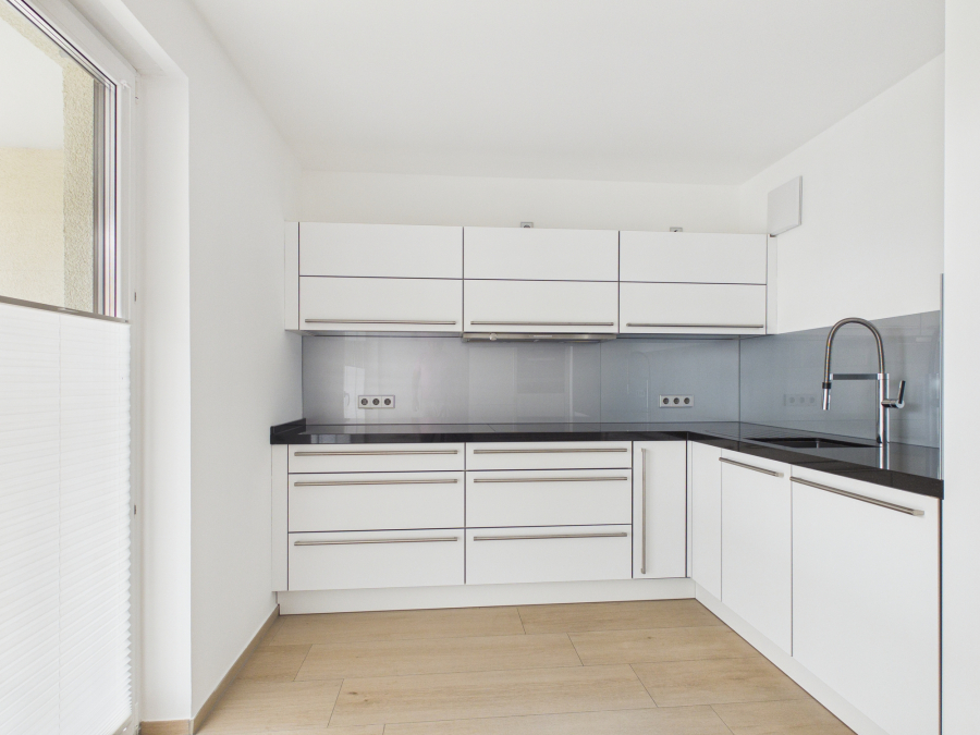 Diese helle und moderne 3-Zimmer-Mietwohnung mit ca. 109 m² Wohnfläche im 1. Obergeschoss mit Personenaufzug liegt in einem ruhigen Mehrfamilienhaus (KfW-Effizienzhaus 70) in Fellbach.