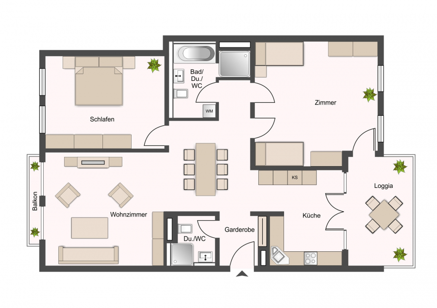 Diese Wohnung hat einen großzügig gestalteten Grundriss. Lichtdurchflutet und individuell durchdacht bietet es Ihren Möbeln den optimalen Stellplatz. Dazu kommt eine überdachte Loggia, die zu jeder Jahreszeit den gewünschten Raum zum Entspannen gibt.